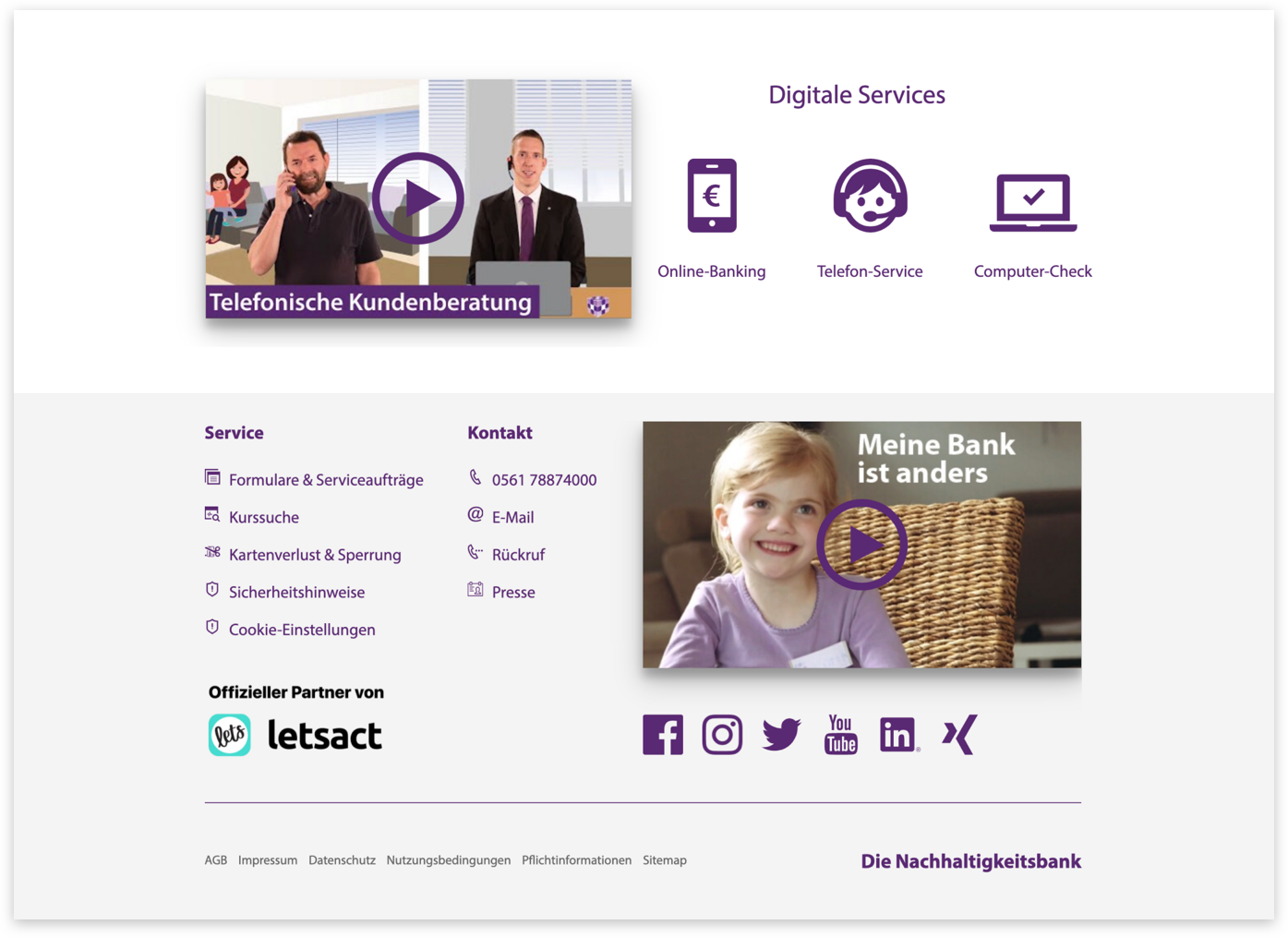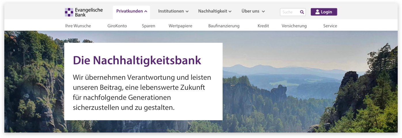 I kept several modules from the old design functionally the same, while changing the content they contained and tweaking the design slightly. The section about what distinguishes the EB from other banks for example stayed, because it highlights the main values of the bank: responsibility and sustainability.