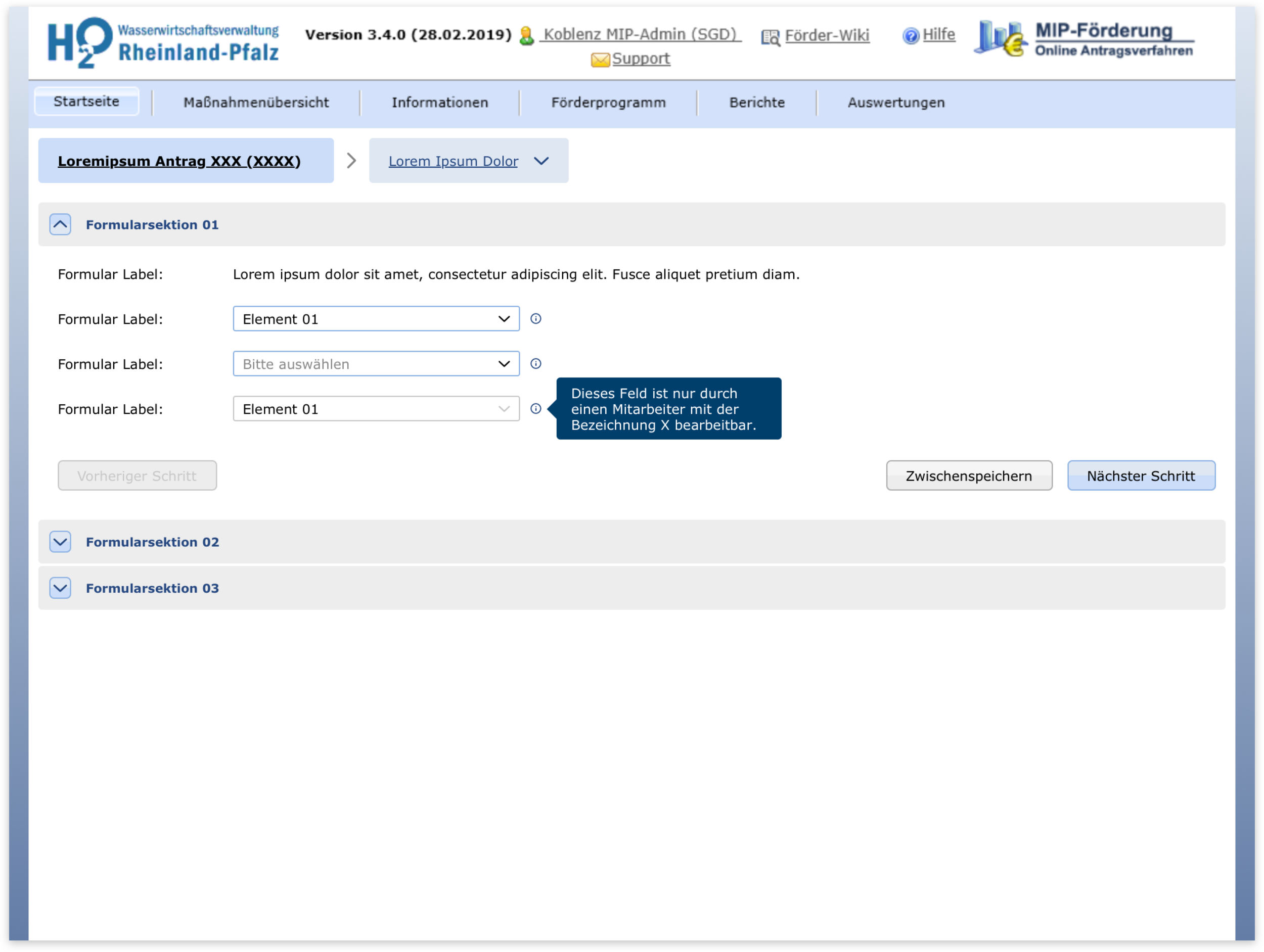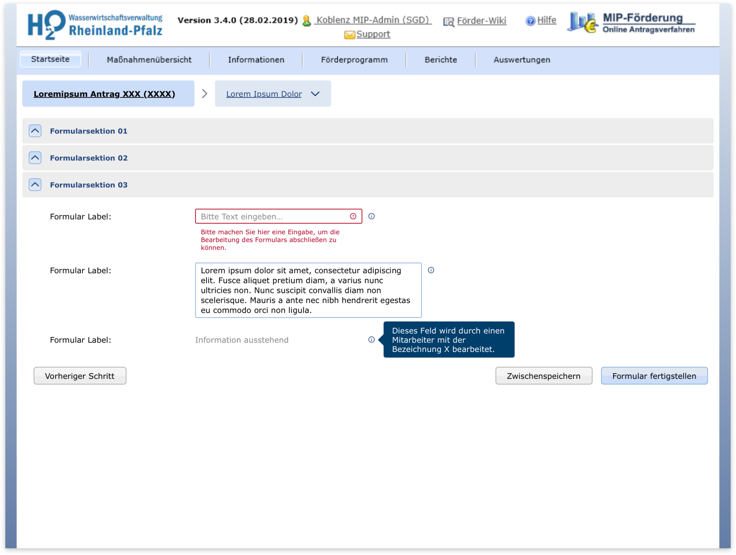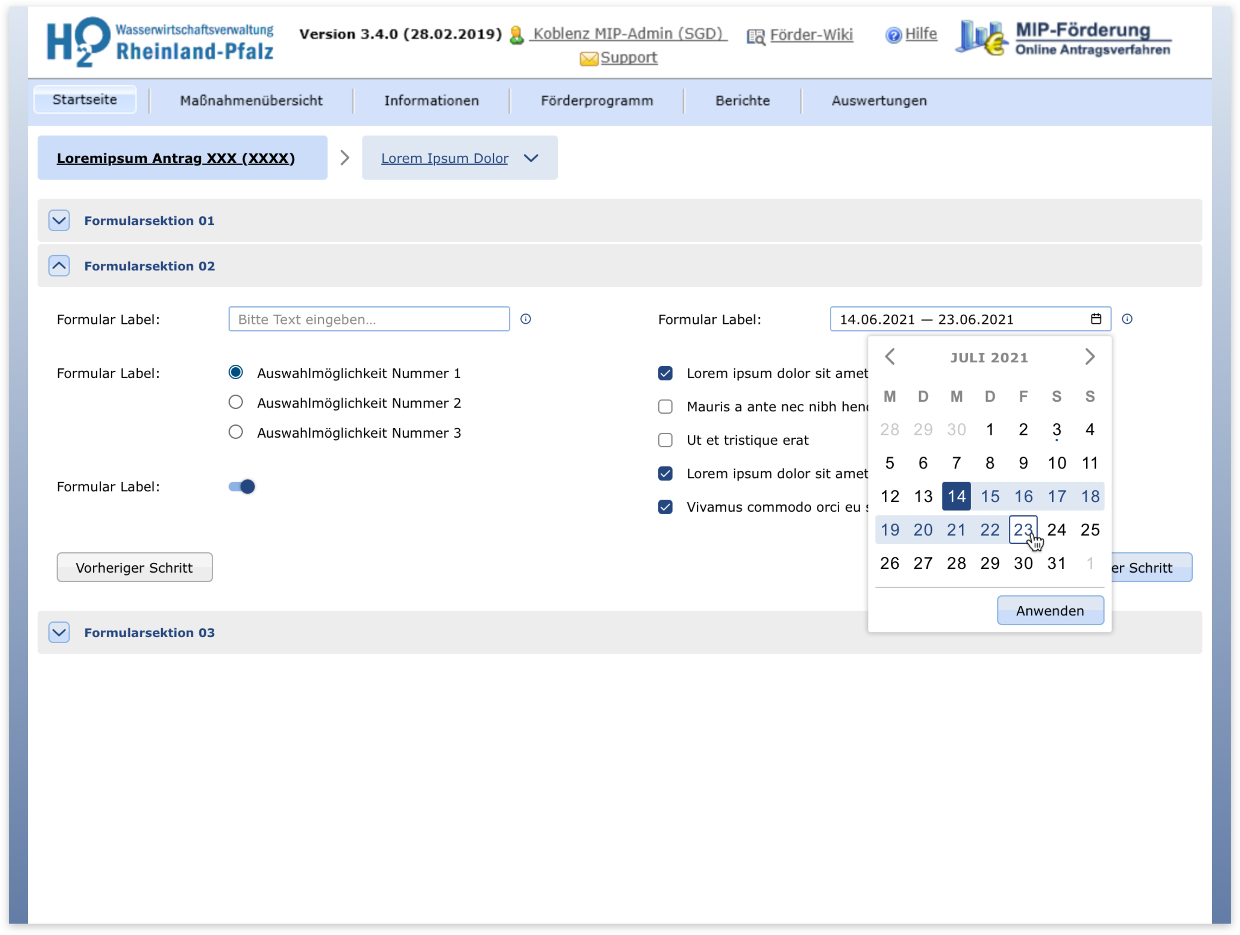 The Lfu RP is a government body dealing with environmental issues. They asked USU to develop for them a software to manage the application process for support programs concerning water economy. It was my task to come up with design ideas to solve a set of specific problems: